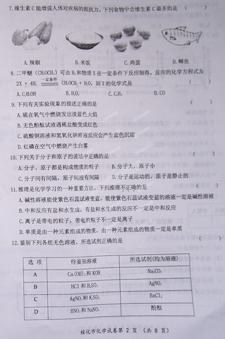 2013年黑龙江绥化中考化学试题(图片版)(2)