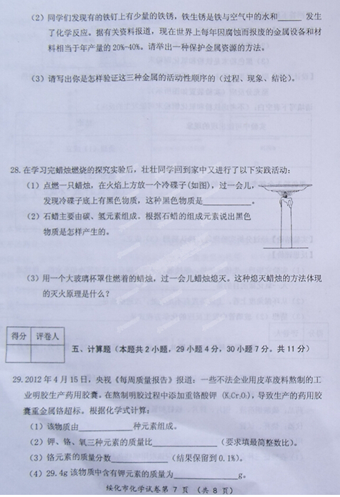 2013年黑龙江绥化中考化学试题(图片版)(7)