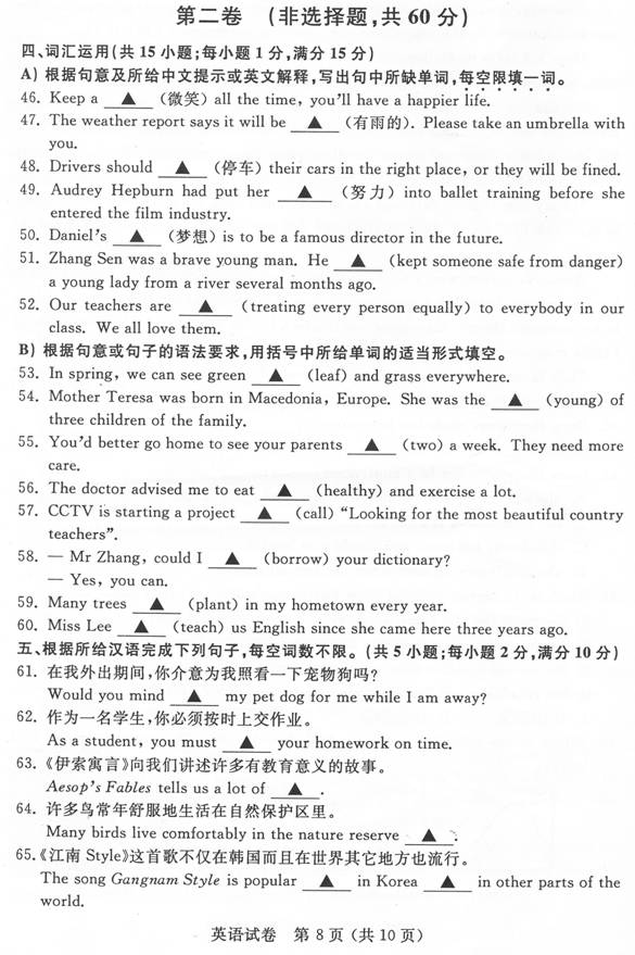 2013年江苏宿迁中考英语试题(图片版)(8)