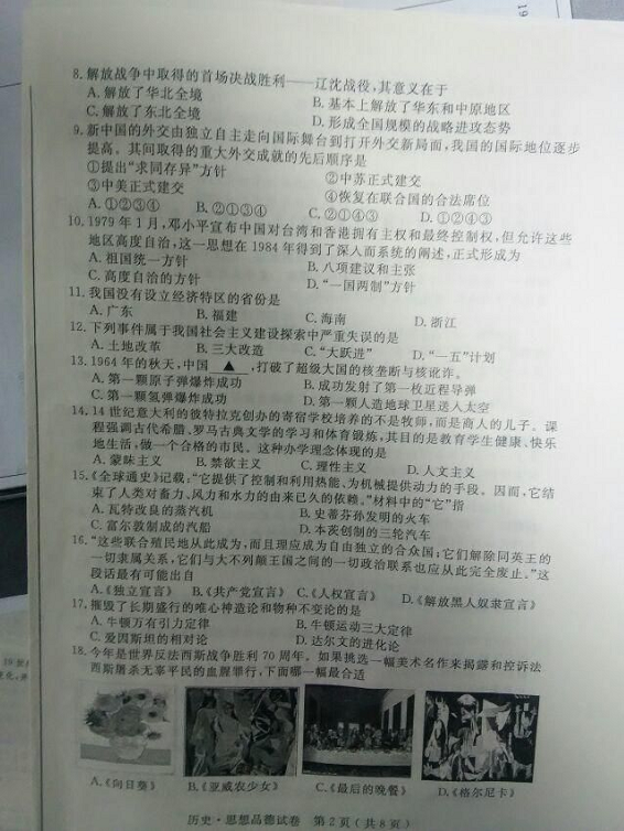 2015年江苏宿迁中考历史试题(图片版)(2)