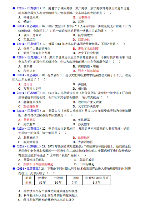 2014年江苏镇江中考历史试题(图片版)(3)