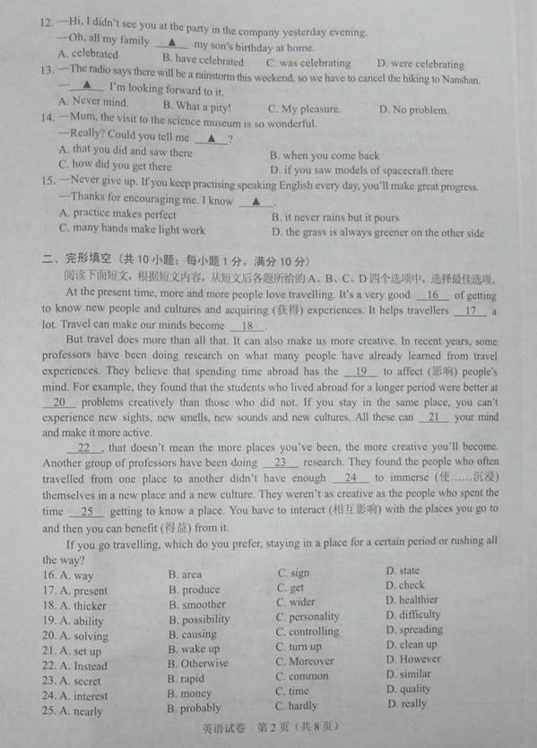 2015年江苏镇江中考英语试题(图片版)(2)