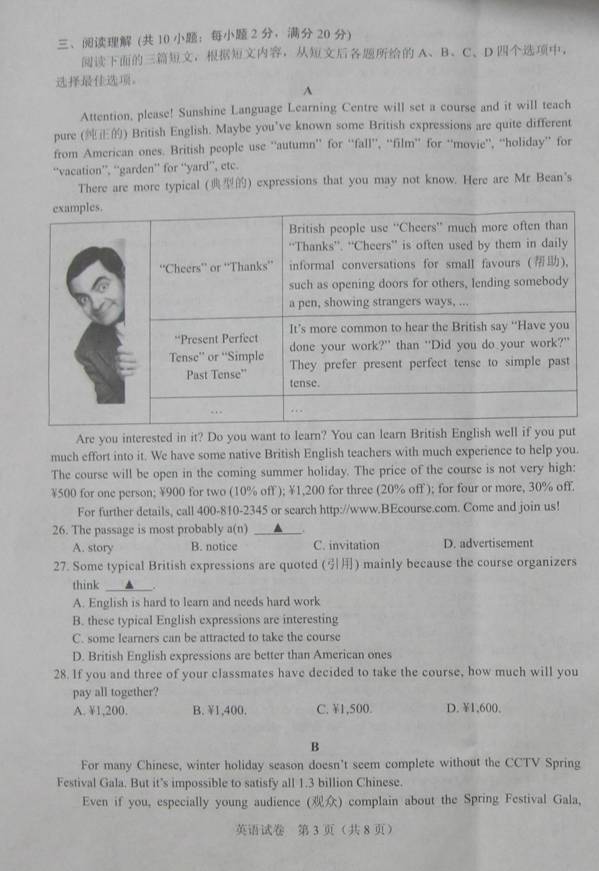 2015年江苏镇江中考英语试题(图片版)(3)