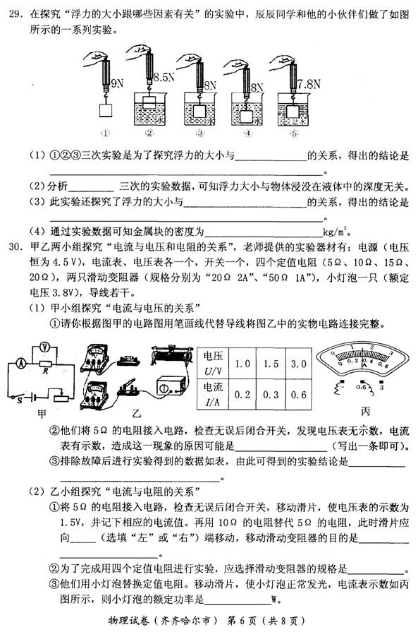 2014年黑龙江黑河中考物理试题(图片版)(6)