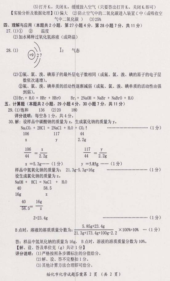 2014年黑龙江绥化中考化学试题答案(图片版)(2)