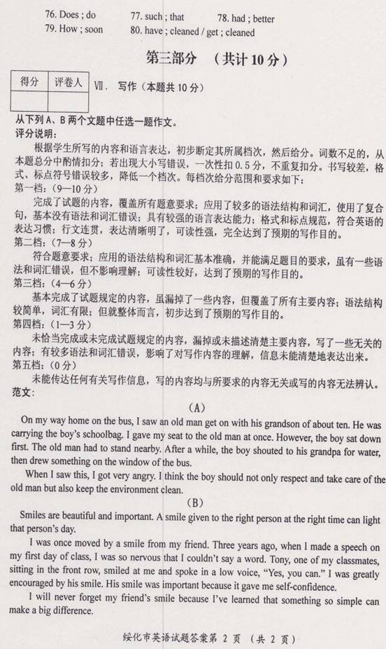 2014年黑龙江绥化中考英语试题(图片版)(2)
