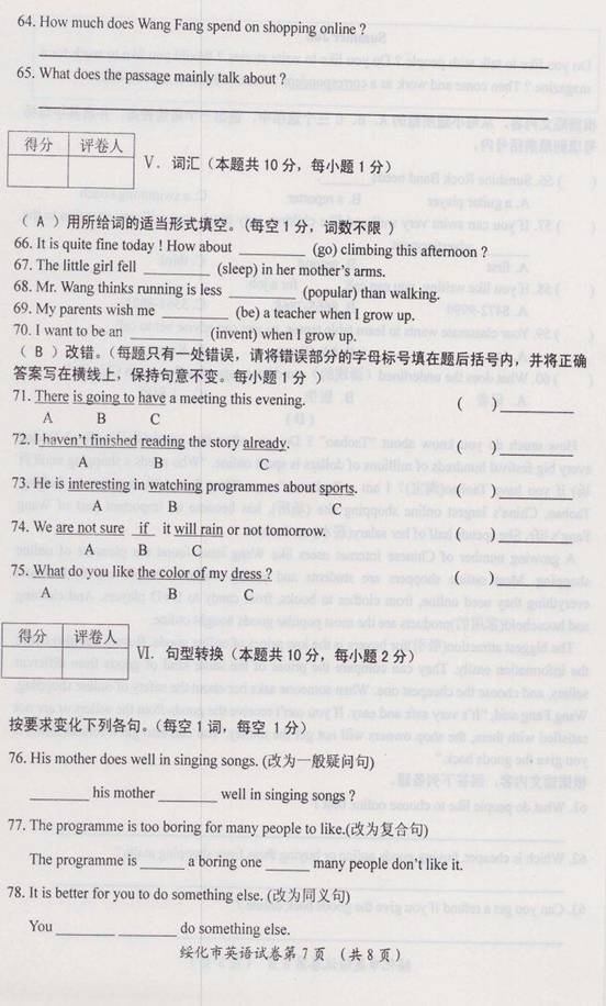 2014年黑龙江绥化中考英语试题(图片版)(7)