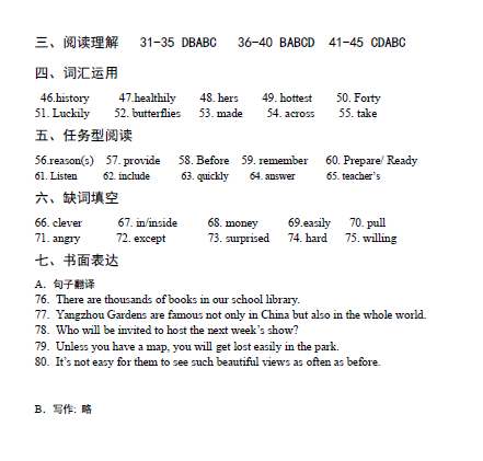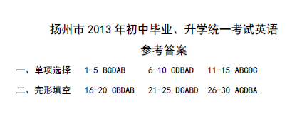 2013年江苏扬州中考英语试题答案