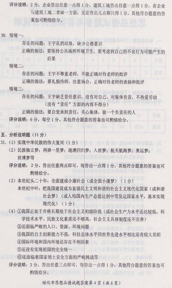 2014年黑龙江绥化中考思想品德试题答案(图片版)(4)