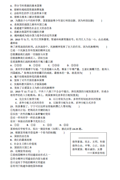 2014年黑龙江牡丹江中考思想品德试题(图片版)(3)