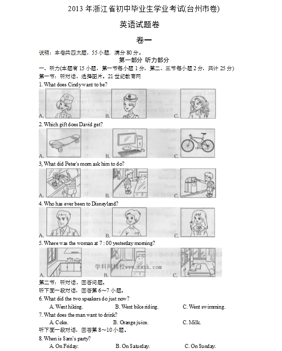 2013年浙江台州中考英语试题(图片版)