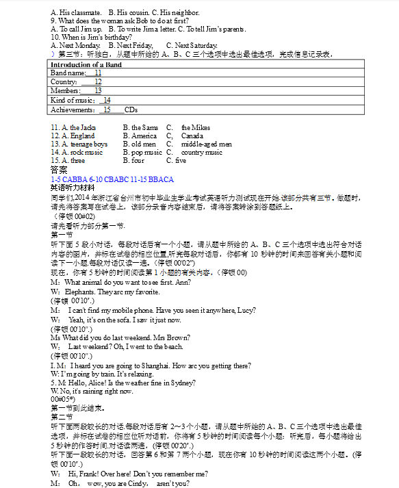 2014年浙江台州中考英语试题答案(图片版)(2)