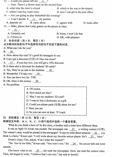 2015年辽宁葫芦岛中考英语真题(图片版)