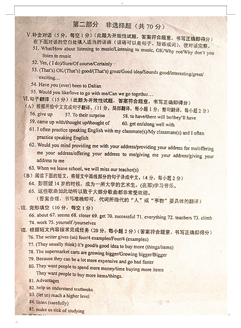 2013年辽宁本溪中考英语试题答案(图片版)(2)