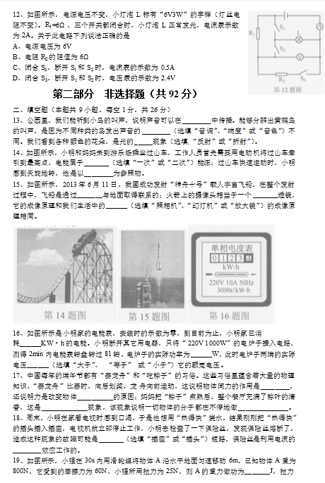 2013年辽宁铁岭中考物理试题(图片版)(3)