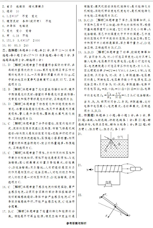 2013年辽宁辽阳中考物理试题答案(图片版)
