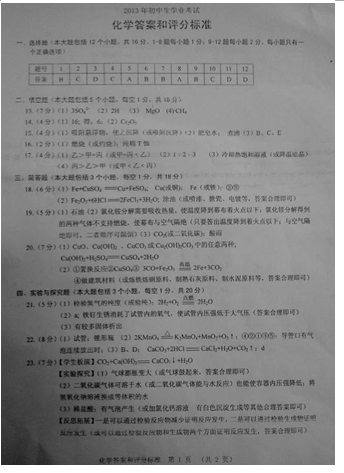 2013年辽宁锦州中考化学真题答案(图片版)
