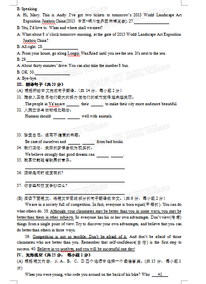 关于【辽宁营口中考英语真题(图片版)(3)】及中考、查分、择校等最新干货资讯,均在家长帮App,还有配套习题及老师免费解答问题,赶快戳我下载 >>>【家长帮App】<<< 相关推荐 2020年中考必备APP「家长帮」免费下载2020年全国中考考试时间汇总2020年全国中考报名时间汇总2020年全国中考大事记2020年中考考前冲刺各科备考全攻略历年全国各省市中考真题及答案历年中考满分作文历年中考录取分数线汇总2020年中考资讯提前看2020年中考政策解读2020年中考政策解读 点击查看更多