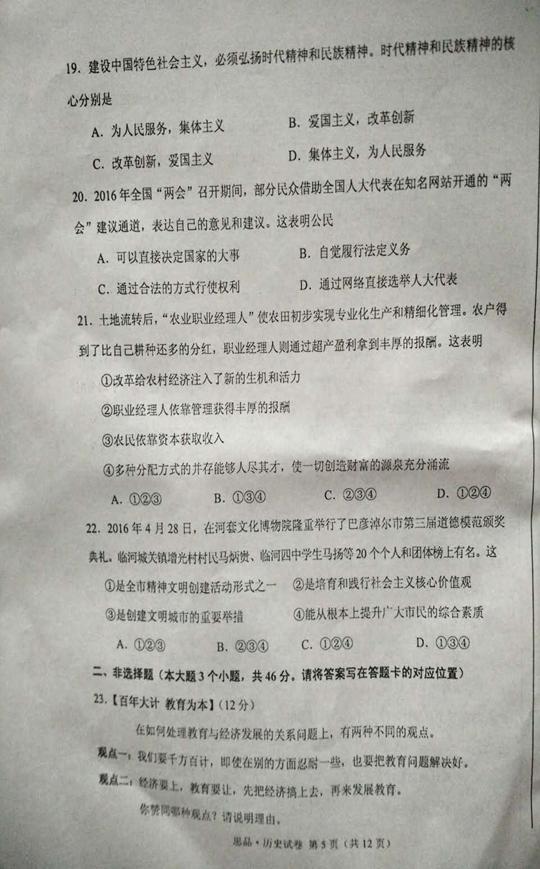 2016年内蒙古巴彦淖尔中考思想品德试题(图片版)(6)