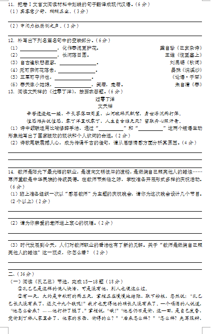贵州省铜仁市2017年语文中考试题(图片版)(3)