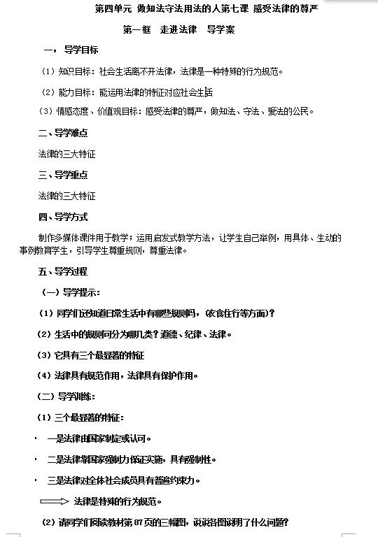 人教版七年级下政治第七课感受法律的尊严(图片版)如下: