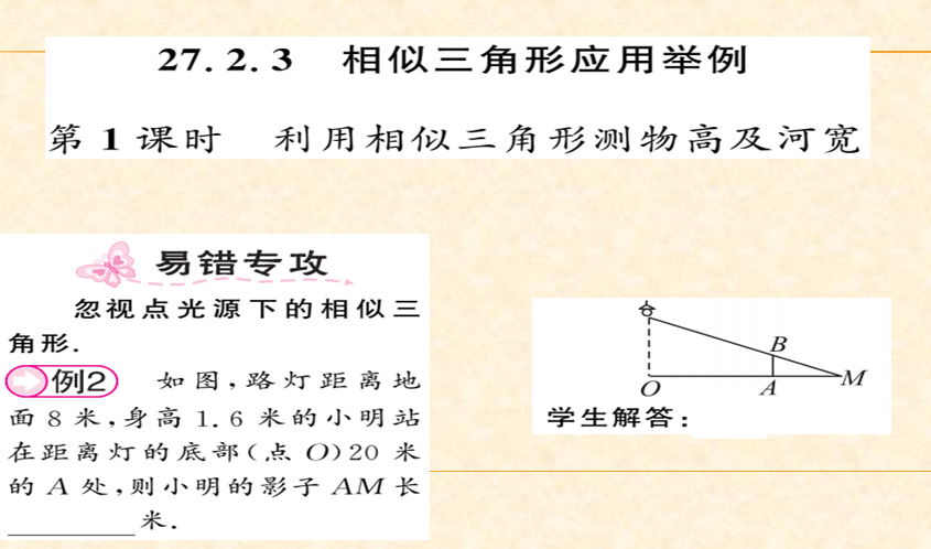 关于【人教版九年级下相似三角形应用举例(图片版)(2)】及中考、查分、择校等最新干货资讯,均在家长帮App,还有配套习题及老师免费解答问题,赶快戳我下载 >>>【家长帮App】<<< 相关推荐 2020年中考必备APP「家长帮」免费下载2020年全国中考考试时间汇总2020年全国中考报名时间汇总2020年全国中考大事记2020年中考考前冲刺各科备考全攻略历年全国各省市中考真题及答案历年中考满分作文历年中考录取分数线汇总2020年中考资讯提前看2020年中考政策解读2020年中考政策解读 点击查看更多