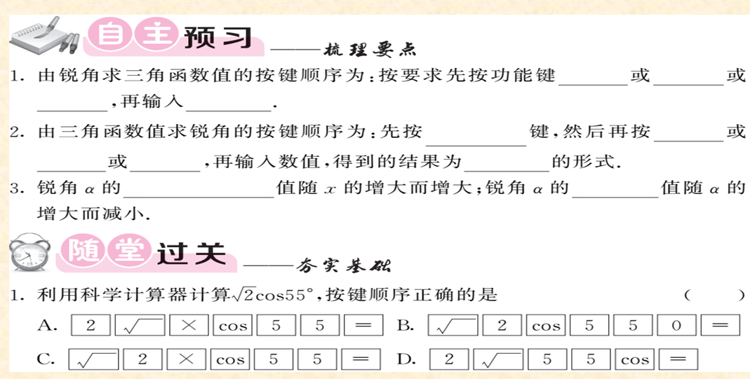 人教版九年级下用计算器求三角函数值与锐角的度数(图片版)(2)