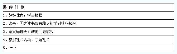 The summer holiday is coming. I'm going to have a good rest and learn to relax myself. I will read more useful books because reading more books is not only interesting but also can make me learn more knowledge. I will try to spend more time in chatting with my parents and help them to do some housework. I am going to take part in the social activities so that I can know more about the society. If possible, I'd like to go to Shanghai for a visit of the World Expo. I'm sure I'll have an interesting and meaningful summer holiday.