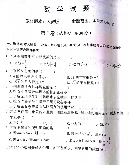2018七年级期末考试已经圆满结束,中考网第一时间为大家整理了期末真题及答案内容,希望对各位考生及家长有所帮助,预祝大家考试取得好成绩。下面是《2018七年级期末数学试题》,供大家参考