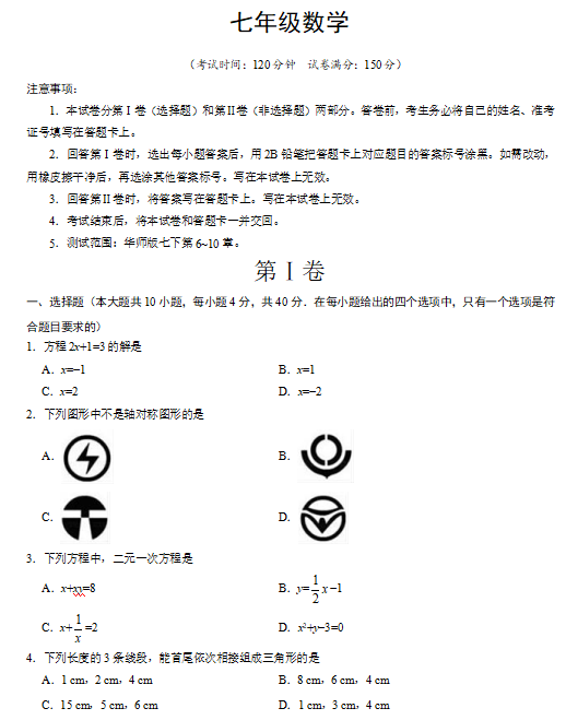 2018七年级期末考试已经圆满结束,中考网第一时间为大家整理了期末真题及答案内容,希望对各位考生及家长有所帮助,预祝大家考试取得好成绩。下面是《2018七年级期末数学试题》,供大家参考