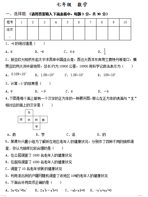 2018七年级期末考试已经圆满结束,中考网第一时间为大家整理了期末真题及答案内容,希望对各位考生及家长有所帮助,预祝大家考试取得好成绩。下面是《2018七年级期末数学试题》,供大家参考