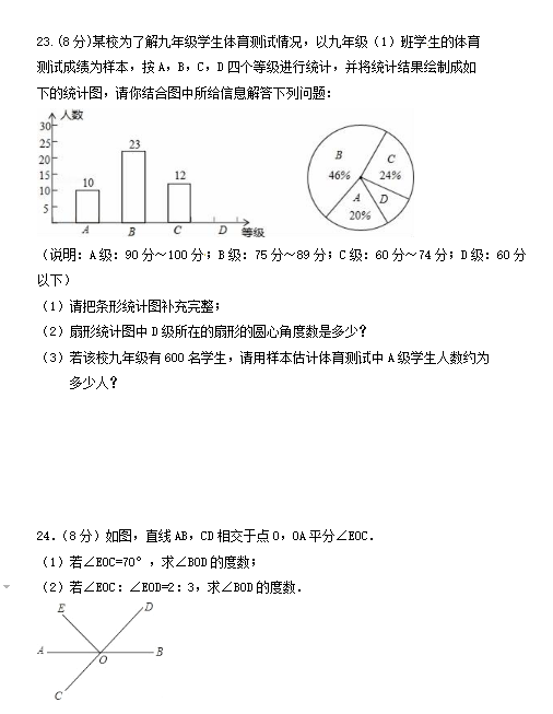 甘肃白银育才2017-2018七年级上期末数学试题(图片版)(4)