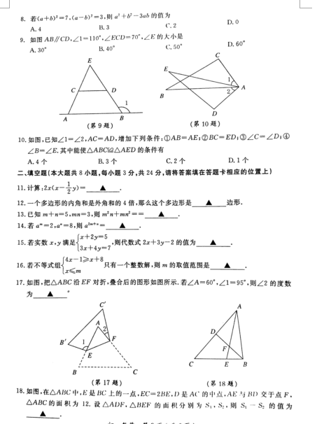 2017-2018第二学期张家港市初一数学期末调研(图片版)(2)