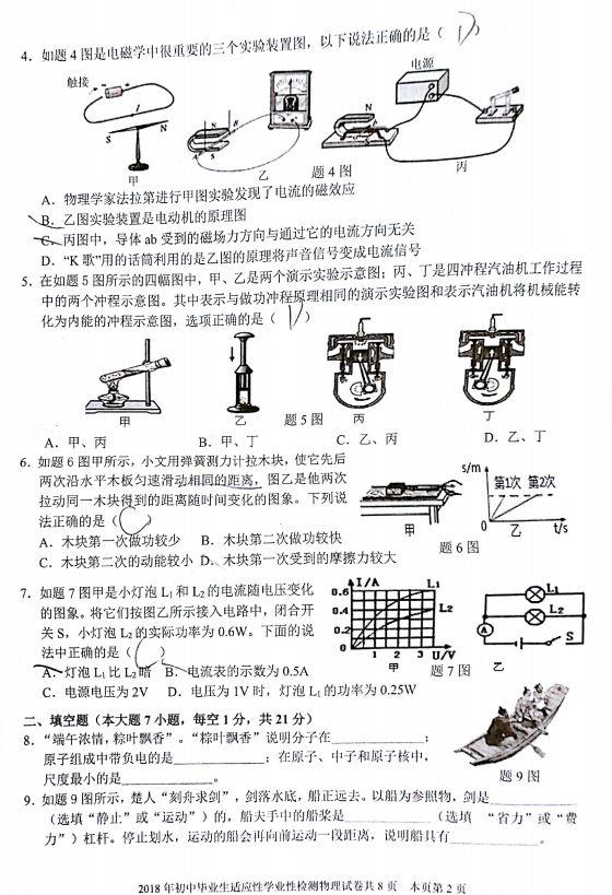 2018年广东佛山桂城初三下二模物理试题(图片版)(2)