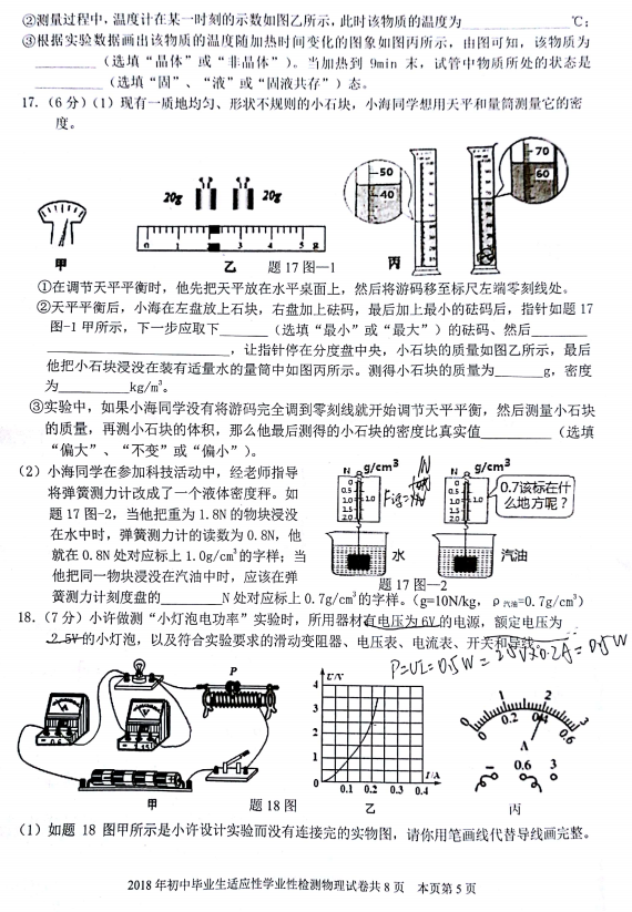 2018年广东佛山桂城初三下二模物理试题(图片版)(5)