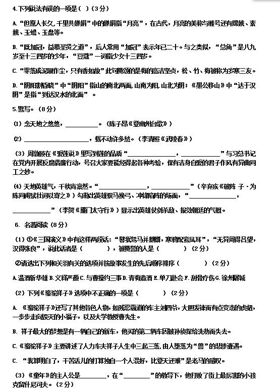 2018山东德州宁津初中学业水平语文模拟试题(图片版)(2)