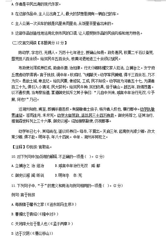2018山东青岛李沧统考九年级语文模拟试题(一)(图片版)(4)