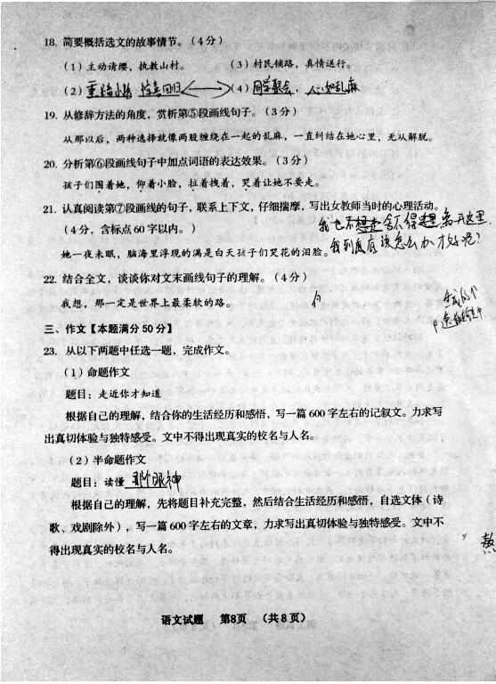 2018山东青岛西海岸新区中考语文一模试题(图片版)(8)