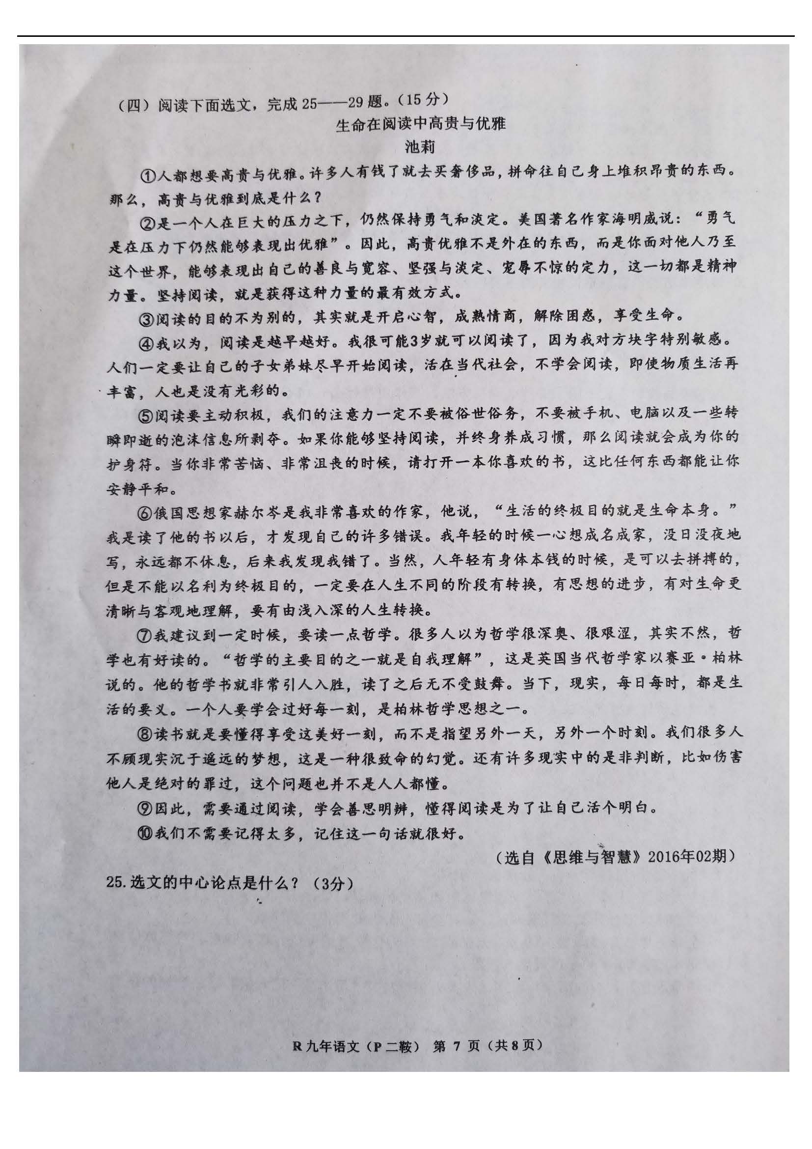 2018辽宁盘锦初中升学语文模拟考试(二)(图片版)(7)