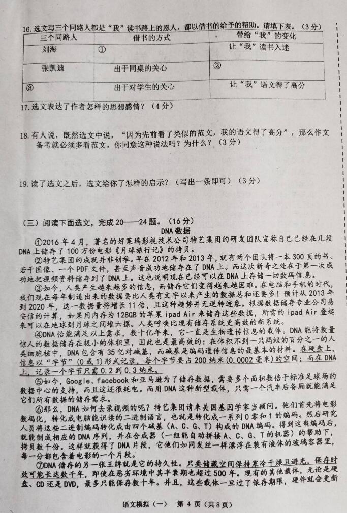 2018辽宁台安初中升学考试语文模拟试卷(一)(图片版)(4)