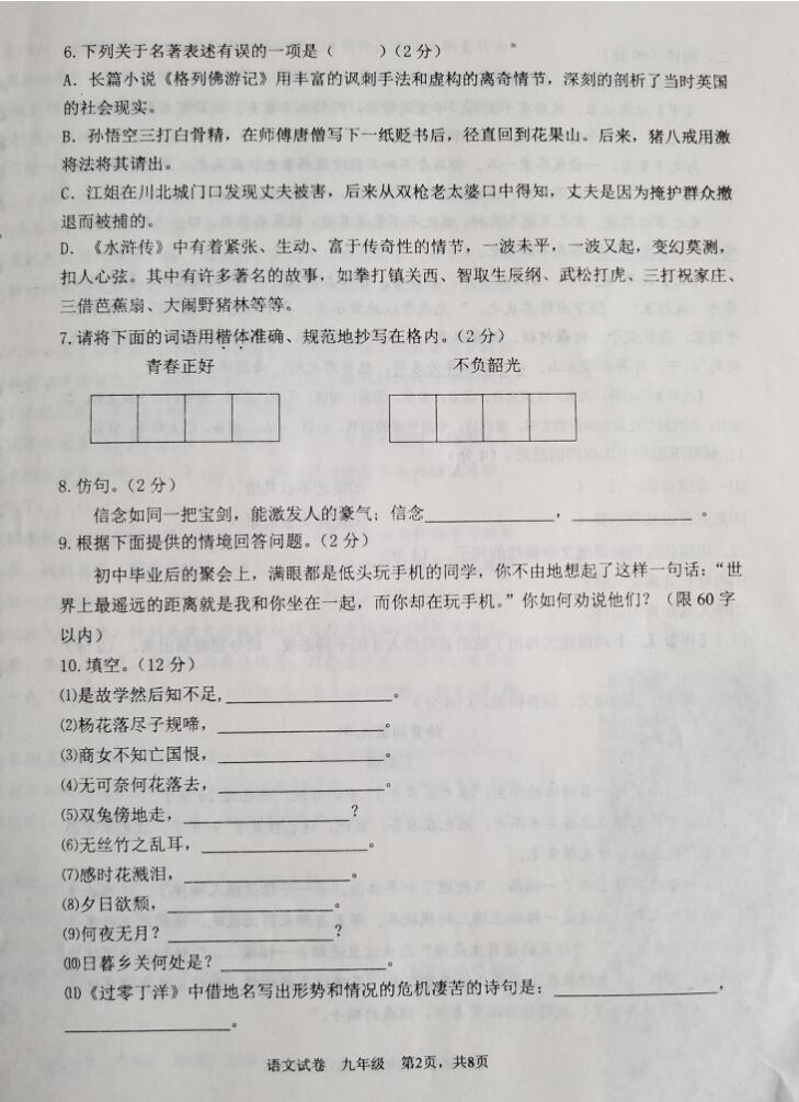 2018辽宁鞍山九年级第二次质量调查语文试题(图片版)(2)