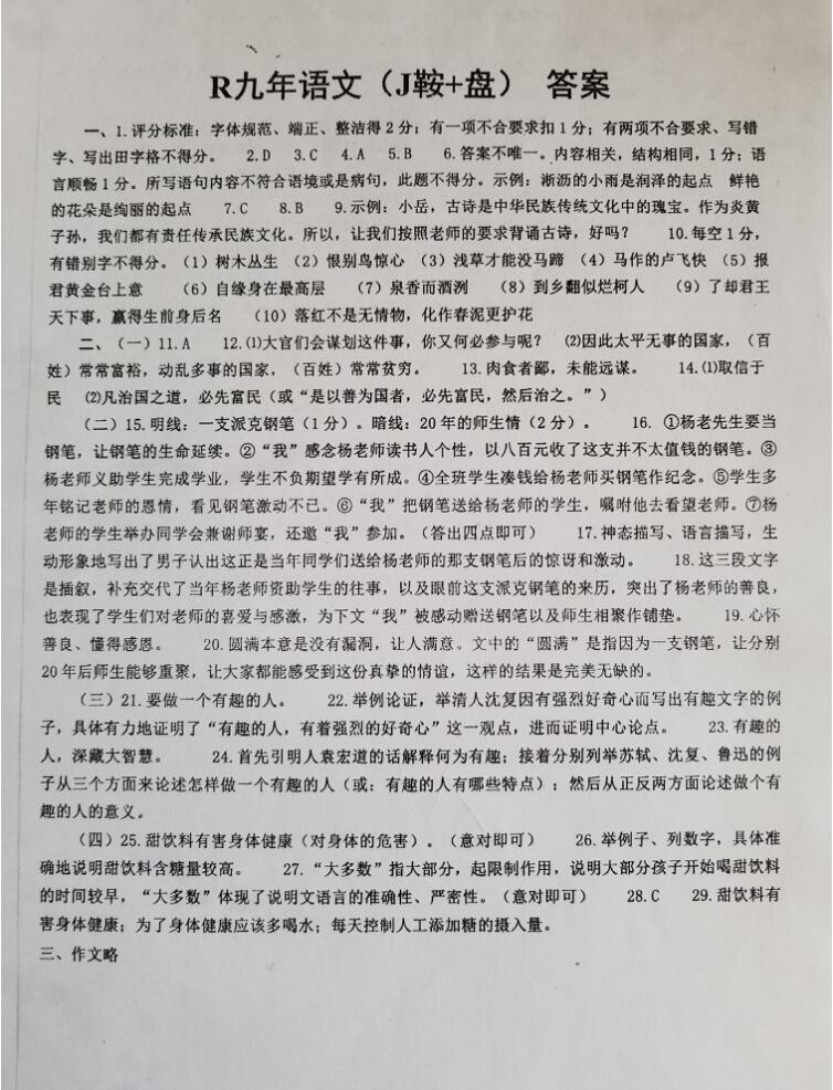 2018辽宁锦州市九年级语文质量检测(一)答案(图片版) 2018-08-11 11:11:46中考网编辑 点击免费领取中考核心考点资料! 2018辽宁锦州市九年级语文质量检测(一)答案(图片版)如下: