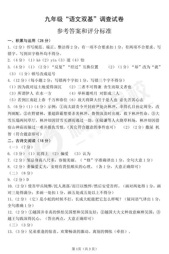 关于【辽宁大连九年级下双基调查语文试题答案(图片版)】及中考、查分、择校等最新干货资讯,均在家长帮App,还有配套习题及老师免费解答问题,赶快戳我下载 >>>【家长帮App】<<< 相关推荐 2020年中考必备APP「家长帮」免费下载2020年全国中考考试时间汇总2020年全国中考报名时间汇总2020年全国中考大事记2020年中考考前冲刺各科备考全攻略历年全国各省市中考真题及答案历年中考满分作文历年中考录取分数线汇总2020年中考资讯提前看2020年中考政策解读2020年中考政策解读 点击查看更多