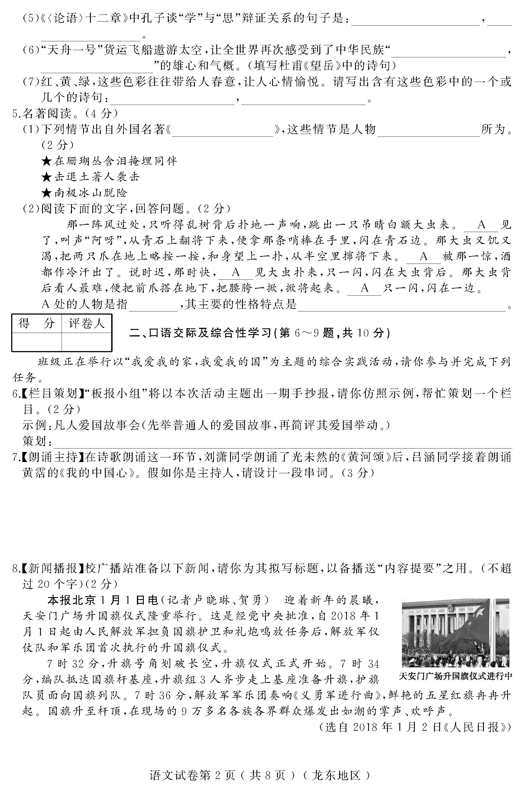 2018黑龙江龙东地区升学模拟大考卷(五)语文试题(图片版)(2)