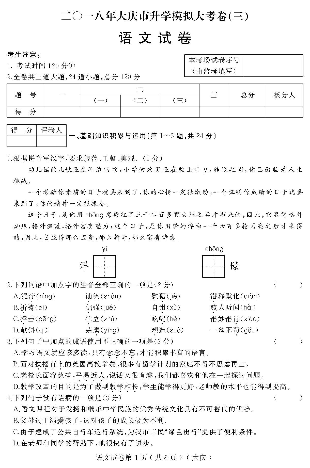 2018黑龙江大庆升学模拟大考卷(三)语文试题(下载版) 2018-08-12 16:05:38中考网编辑 点击免费领取中考核心考点资料! 2018黑龙江大庆升学模拟大考卷(三)语文试题(下载版)如下: 请下载附件: 《2018黑龙江大庆升学模拟大考卷(三)语文试题(下载版)》 (本地下载在线阅读)