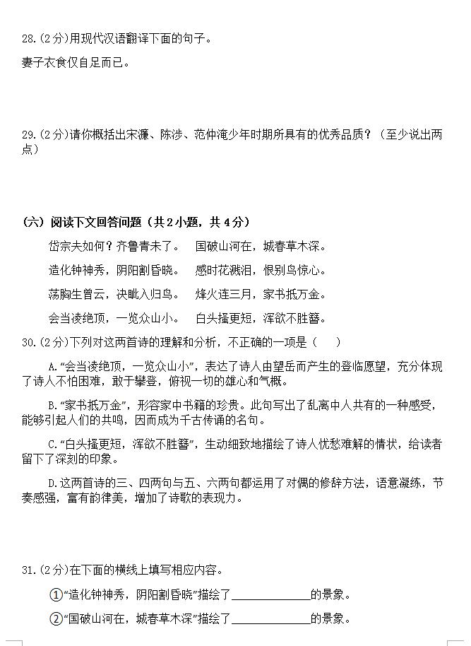 2018黑龙江安达一中初三一模考前测练语文试题(图片版)(12)