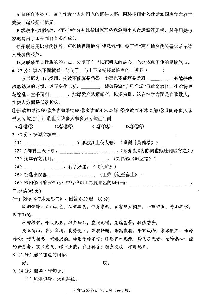 2018黑龙江哈尔滨道里九年级一模语文试题(图片版)(2)