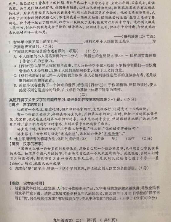 2018山西太原九年级二模语文试题(图片版)(2)