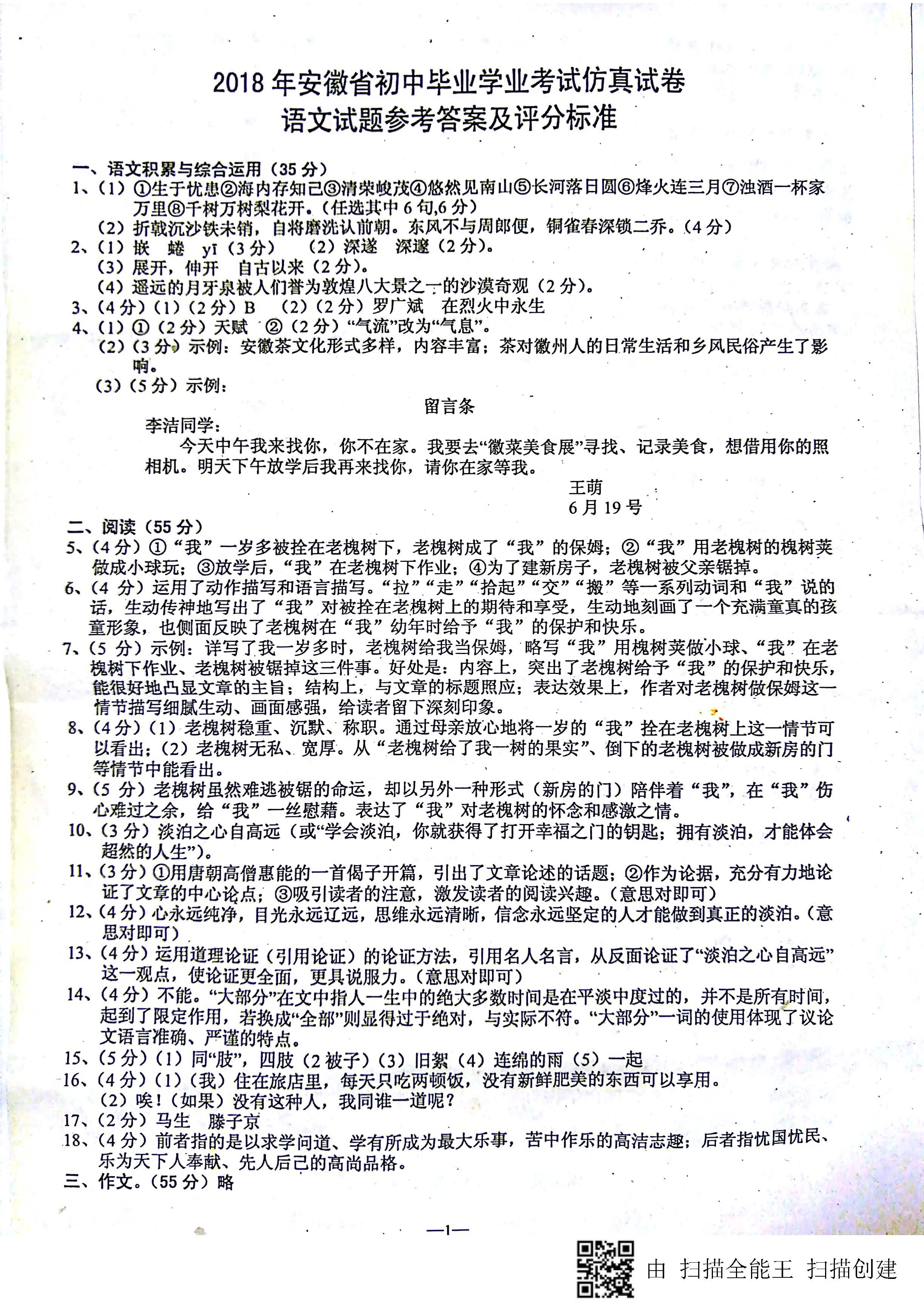 2018安徽省初中毕业学业考试仿真试题语文试卷答案(图片版) 2018-08-12 20:25:14中考网编辑 点击免费领取中考核心考点资料! 2018安徽省初中毕业学业考试仿真试题语文试卷答案(图片版)如下: