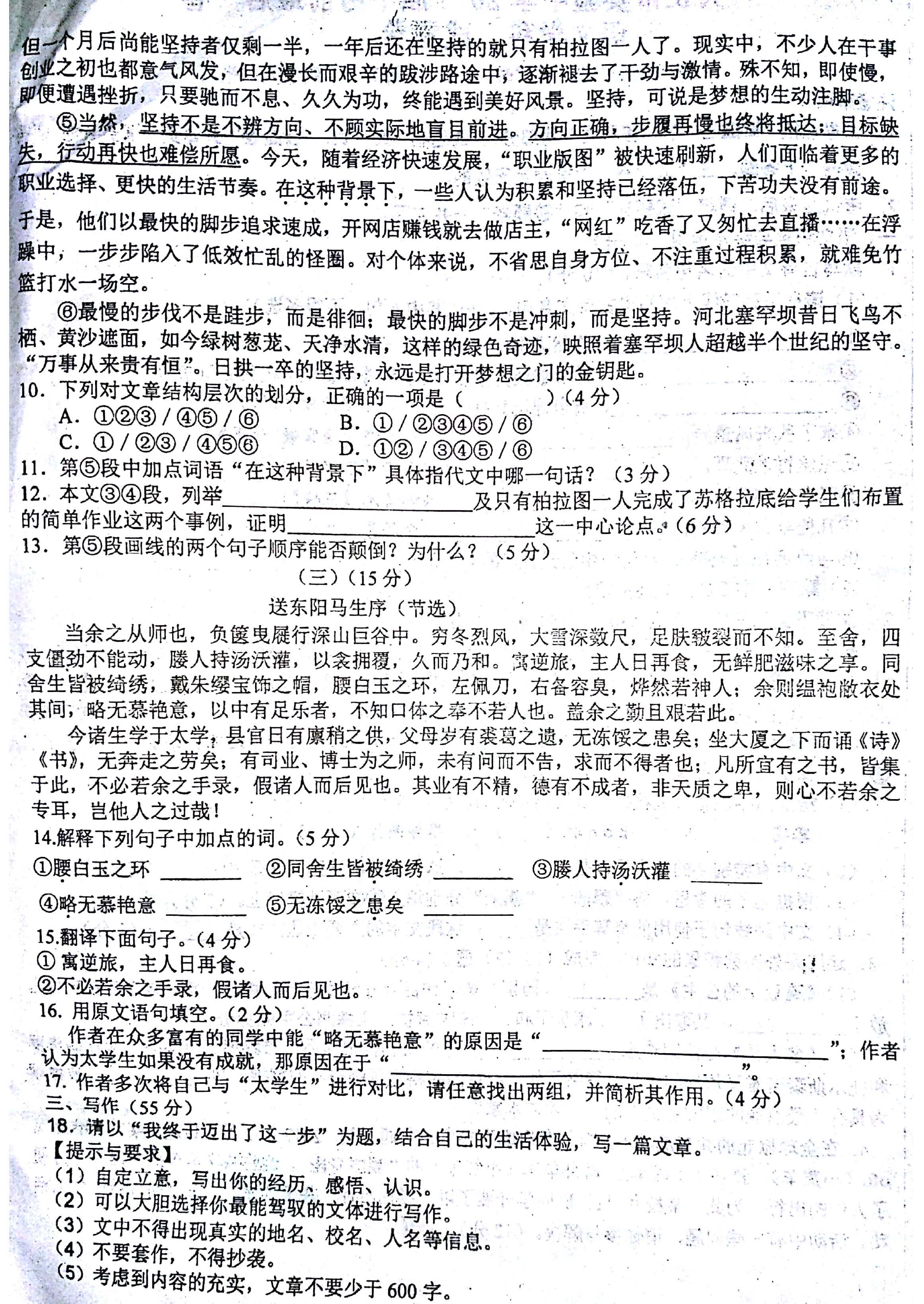 2018安徽天长实验中学中考最后一卷语文试题(图片版)(4)